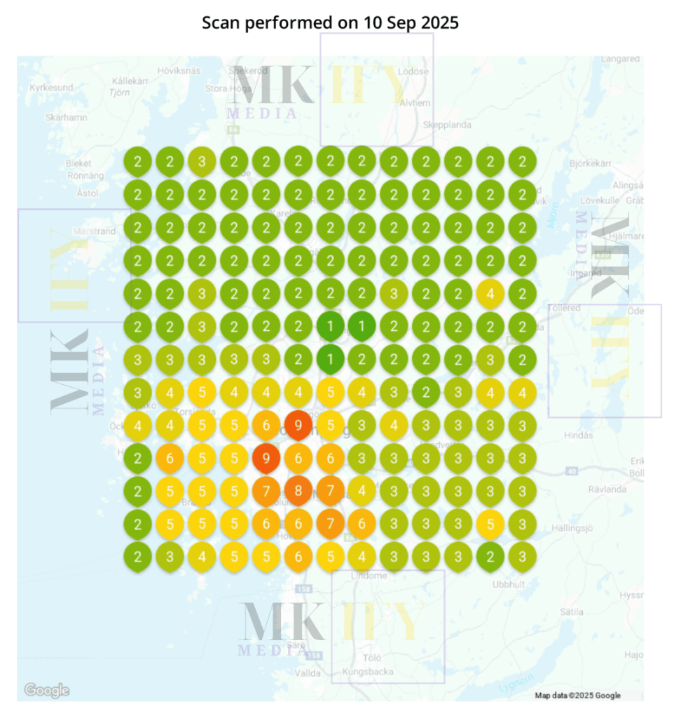 Mycket exakt. Vårt geo-grid system visar din placering område för område, vilket ger en mer rättvis bild än en vanlig sökning. Google-resultat kan skilja sig åt beroende på plats, men vårt verktyg eliminerar gissningar.